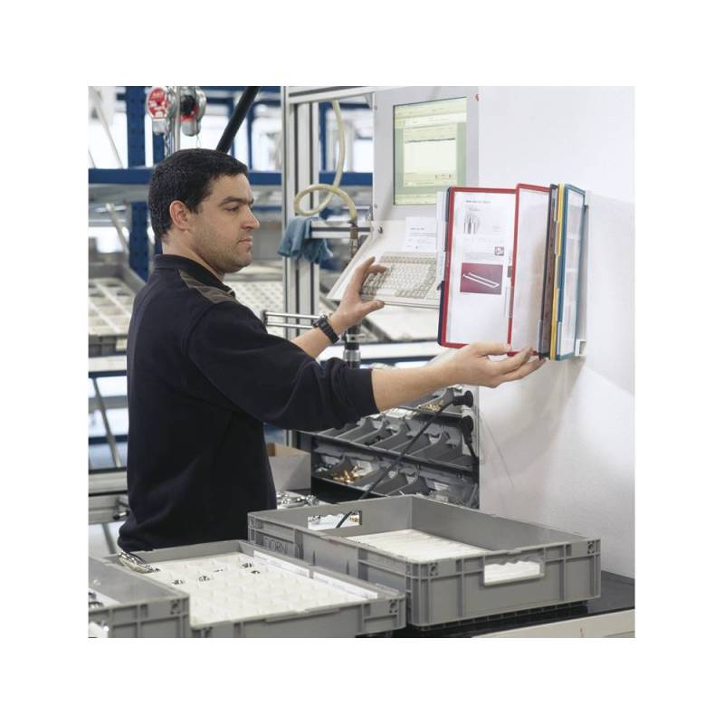 Este portacatálogo mural es una solución práctica y versátil para mantener la información organizada, accesible y visible en espacios profesionales que requieren una presentación ordenada y eficiente. Su diseño robusto y los colores surtidos de las fundas facilitan tanto la clasificación como la consulta rápida, convirtiéndolo en un elemento indispensable para oficinas, puntos de información, y entornos donde la comunicación visual es clave.