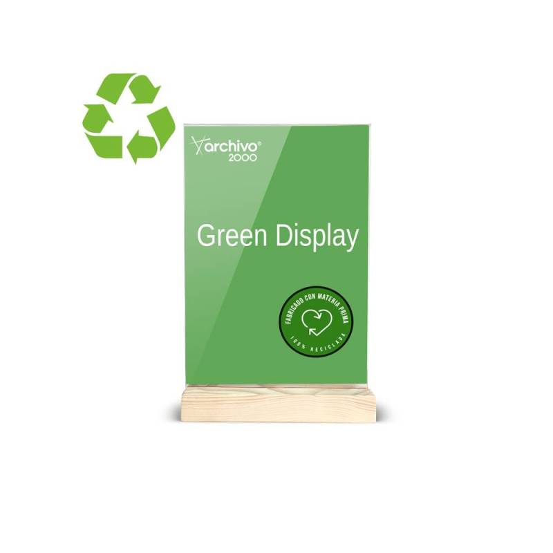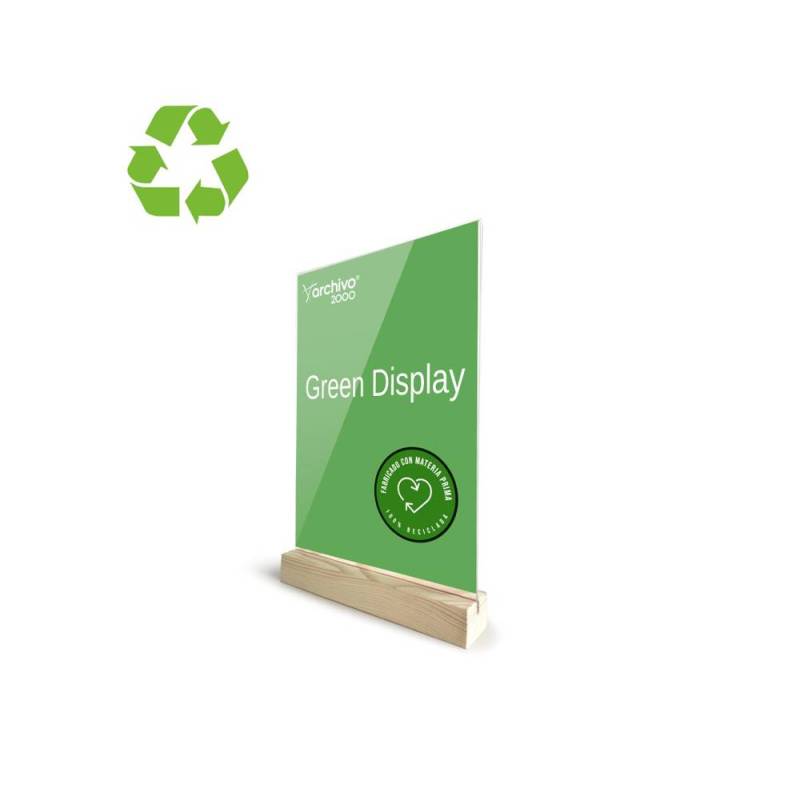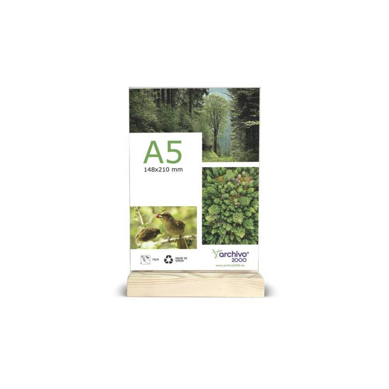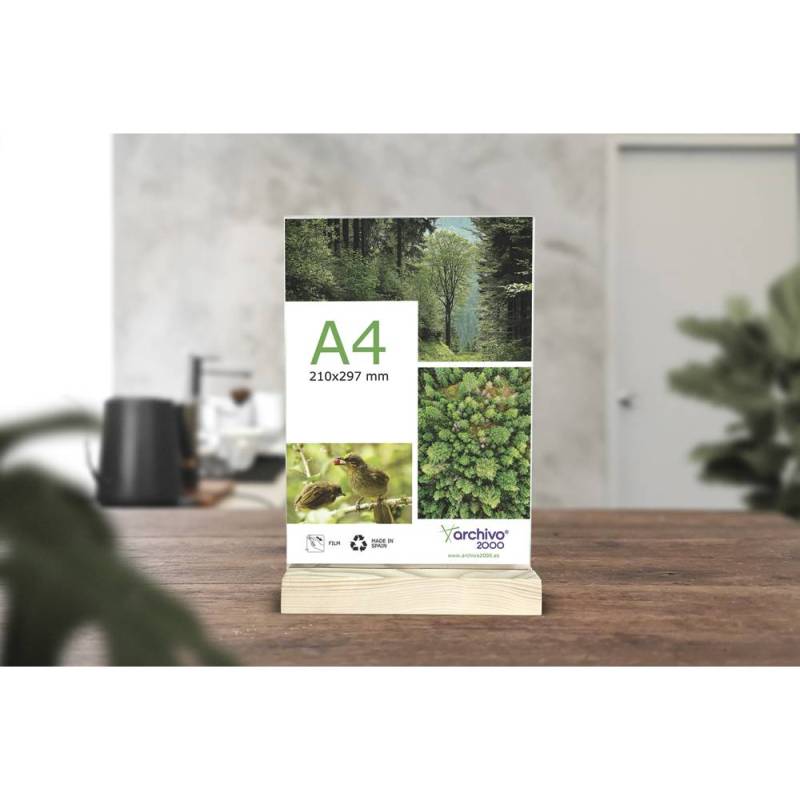 EXPOSITOR SOBREMESA ARCHIVO 2000 FORMA T METACRILATO 100% RECICLADO CON BASE DE MADERA DIN A5 40X150X240 MM