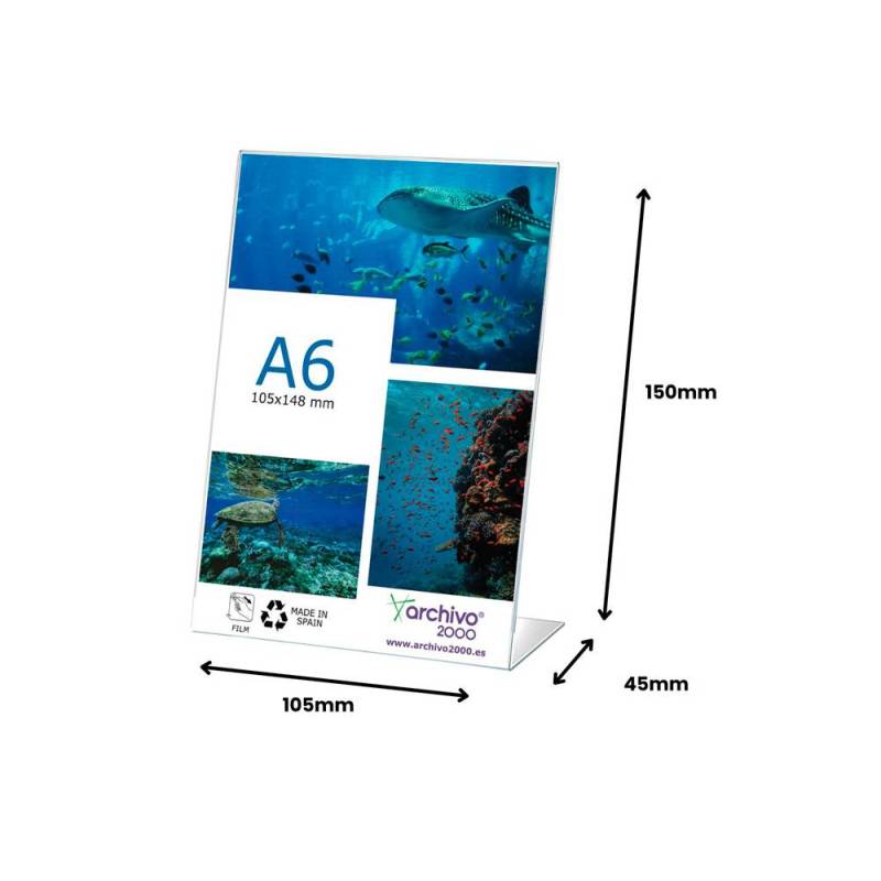 EXPOSITOR SOBREMESA ARCHIVO 2000 PETG FLEXIBLE EN FORMA DE L DIN A6 VERTICAL 45X105X150 MM