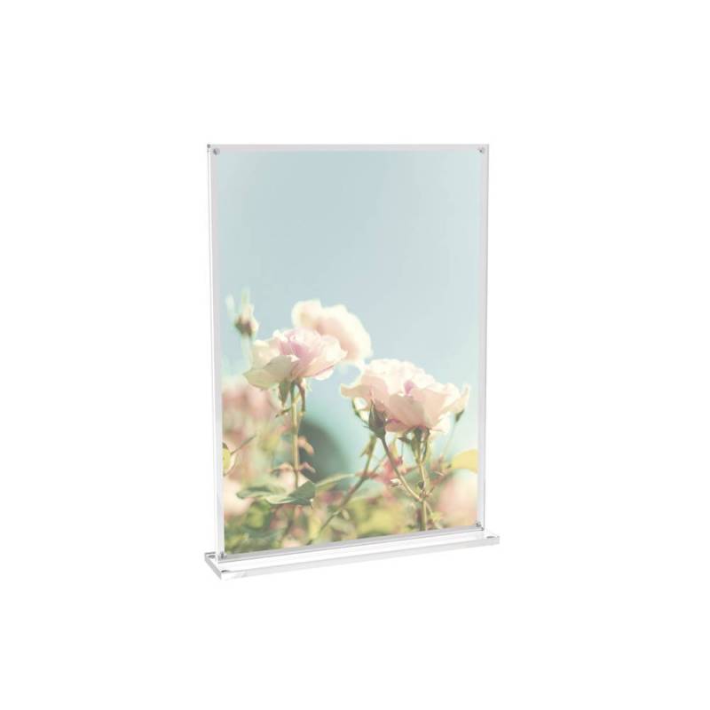 Este expositor sobremesa fabricado en acrílico transparente de alta calidad es una solución elegante y funcional para mostrar documentos tamaño DIN A4 con máxima visibilidad. Su diseño compacto y estable facilita la colocación en escritorios, mostradores o mesas, aportando un acabado profesional y moderno a cualquier espacio de trabajo o atención al público.