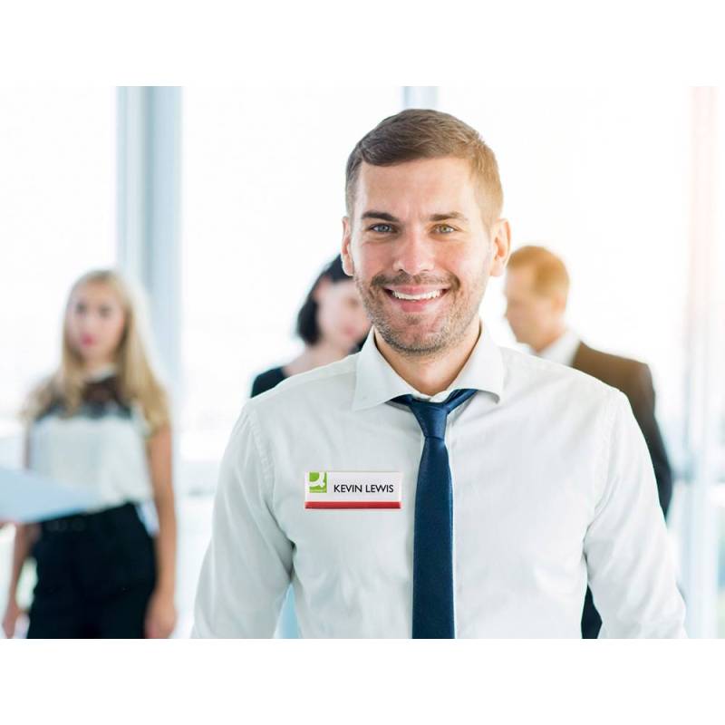 El identificador Q-Connect KF14139 es un accesorio práctico y funcional diseñado para facilitar la identificación visual en diversos entornos laborales y sociales. Con un tamaño compacto de 75 x 28 mm, cuenta con una apertura superior que permite insertar y extraer tarjetas o etiquetas de forma sencilla, ofreciendo una presentación clara y protegida gracias a su funda transparente.