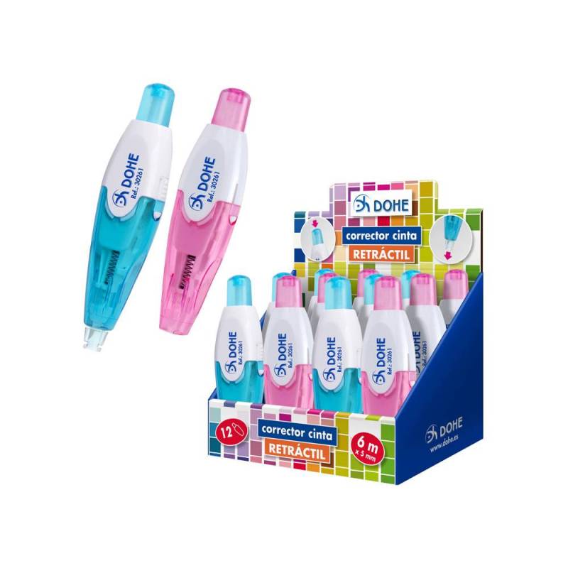 La cinta correctora DOHE retráctil en colores translúcidos es una herramienta práctica y funcional para corregir errores en textos escritos o impresos. Con un diseño compacto y un cuerpo traslúcido, esta cinta ofrece un toque moderno y colorido que se diferencia de los correctores tradicionales, brindando una solución rápida y limpia para tus necesidades diarias.