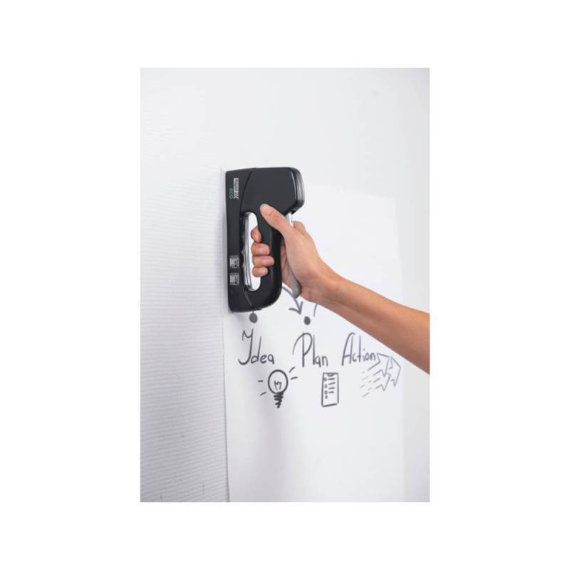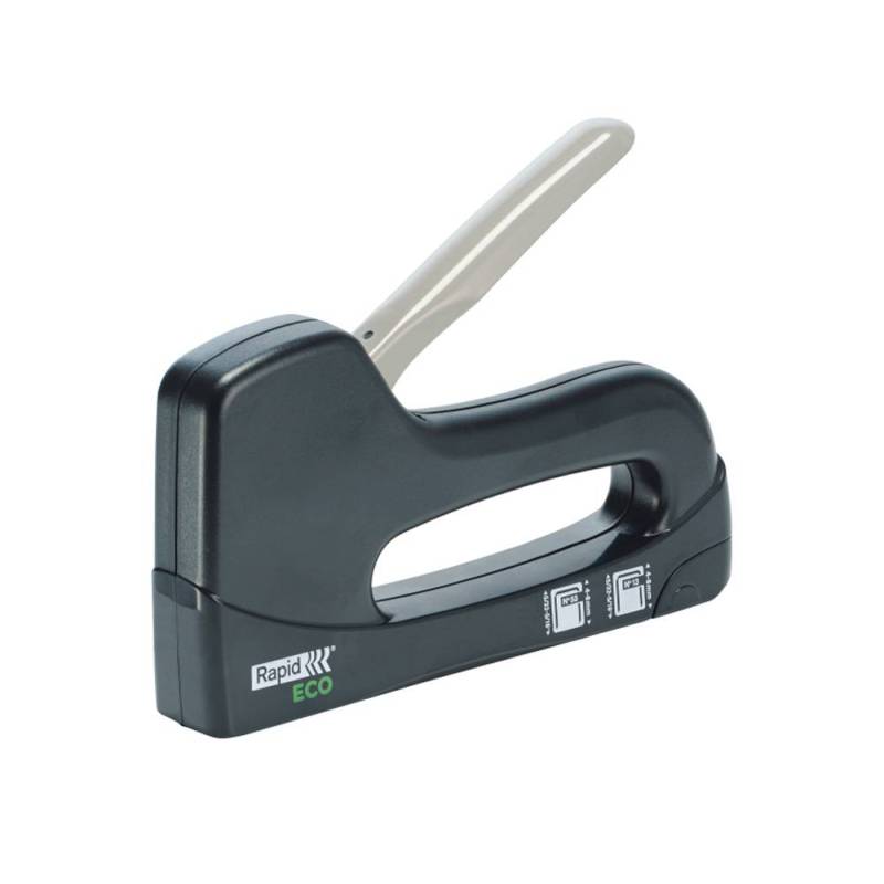 La Grapadora Rapid Clavadora ECO en color negro es la herramienta perfecta para quienes buscan combinar eficiencia, sostenibilidad y diseño ergonómico en sus proyectos de bricolaje y manualidades. Fabricada con 100% plástico reciclado postconsumo, esta grapadora-clavadora no solo es respetuosa con el medio ambiente, sino que también ofrece un rendimiento excepcional en tareas sencillas como el tapizado de muebles y trabajos decorativos con diferentes tipos de tejidos.