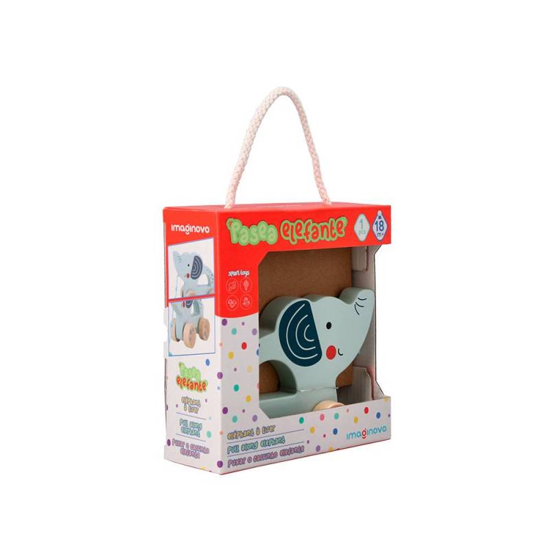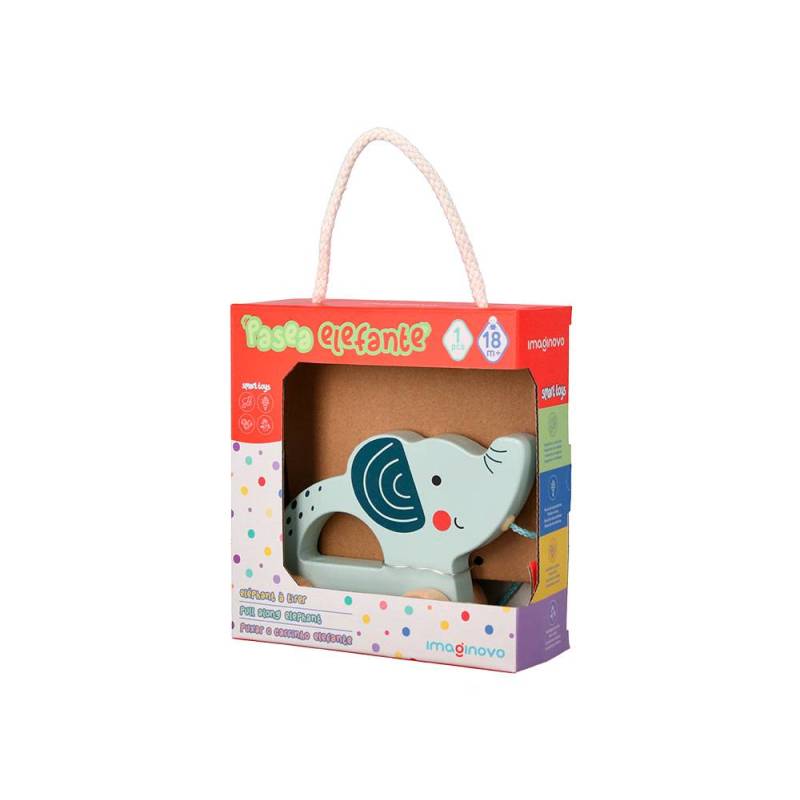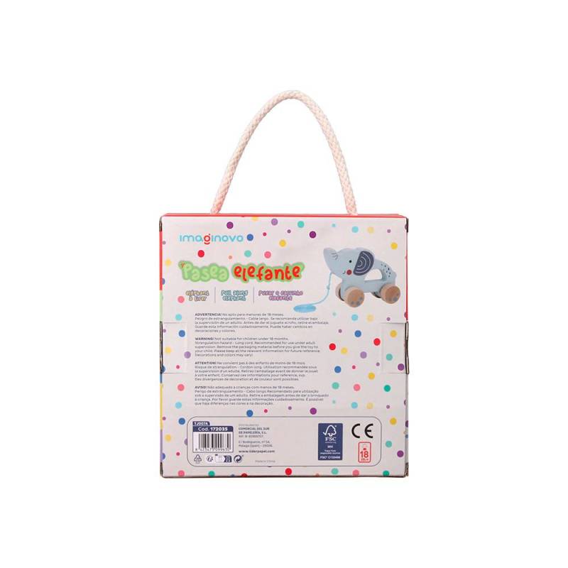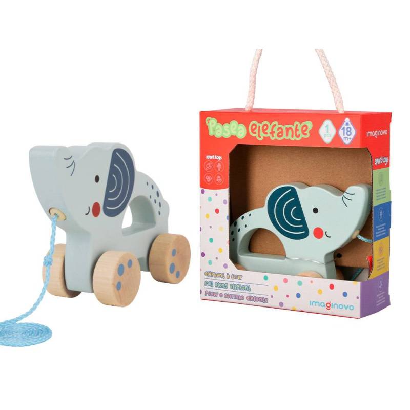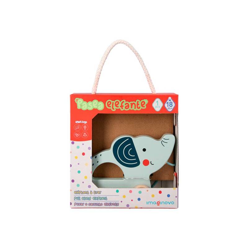 JUEGO INFANTIL IMAGINOVO MADERA ELEFANTE PARA ARRASTRAR CON RUEDAS +12 MESES 13,4X10X5,4CM