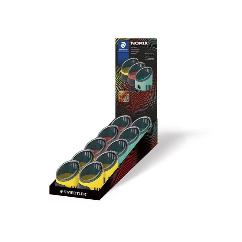 Este sacapuntas metálico de Staedtler Norix ofrece una solución resistente y práctica para el afilado de lápices con un diámetro de hasta 8,2 mm. Su diseño moderno en negro se complementa con un depósito transparente para recoger las virutas, ayudando a mantener el espacio de trabajo limpio y ordenado. Ideal para uso escolar, profesional o personal, destaca por su construcción robusta y funcionalidad intuitiva.