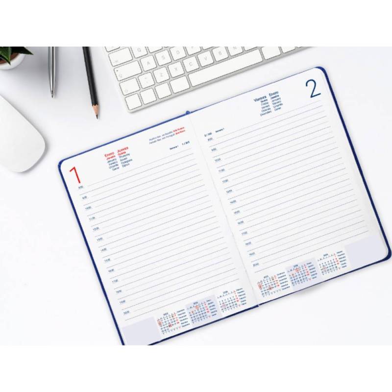 Descubre la combinación perfecta entre funcionalidad y diseño con esta agenda encuadernada en formato A5, ideal para la planificación diaria del año 2026. Con una estructura de día por página, ofrece un amplio espacio para organizar tus actividades, citas y recordatorios con claridad y detalle. Su cubierta de simil piel en color rojo aporta un toque moderno y elegante, mientras que su papel de 70 gramos con certificación FSC garantiza una escritura cómoda y un compromiso con el medio ambiente.
