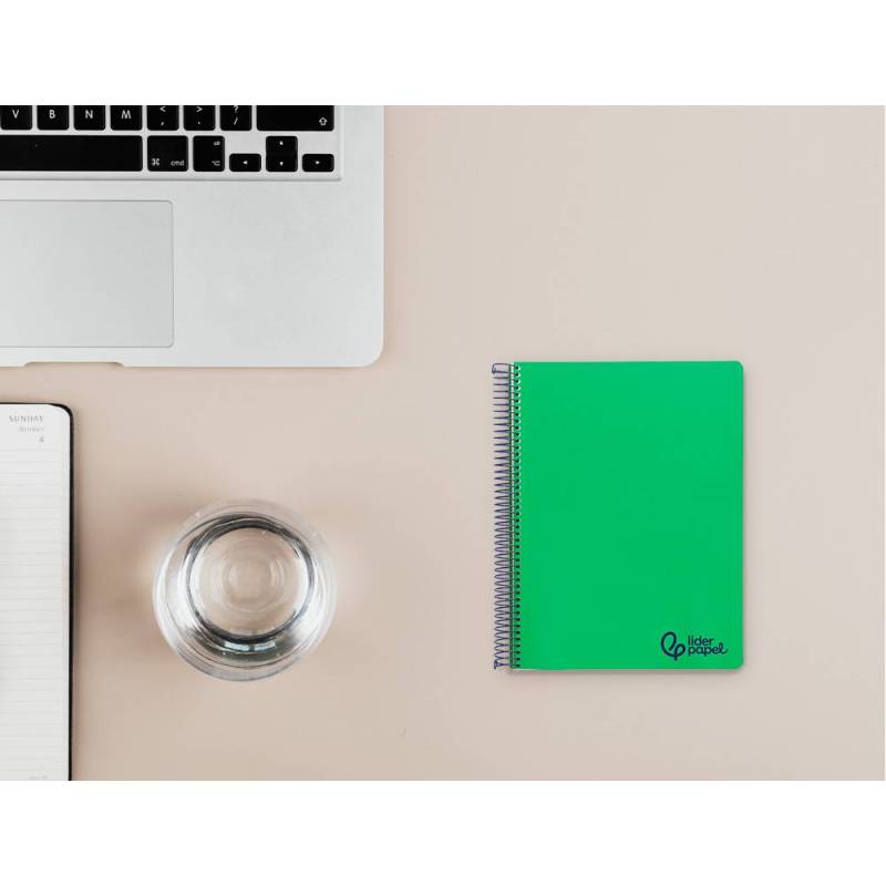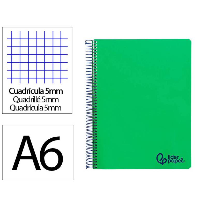 CUADERNO ESPIRAL LIDERPAPEL A6 MICRO WONDER TAPA PLASTICO 120H 90GR CUADRO 5MM 4 BANDAS COLOR VERDE OSCURO