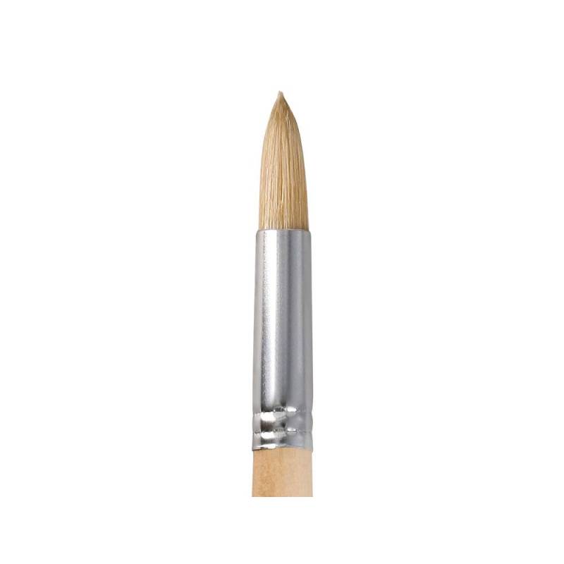 Este pincel para pintura al óleo y acrílica número 16 de punta redonda está fabricado con pelo de cerda natural certificado por FSC, garantizando una procedencia responsable y sostenible del material. Su diseño robusto y versátil lo convierte en una herramienta perfecta para artistas que buscan lograr desde detalles finos hasta trazos más amplios con pinturas de consistencia espesa.