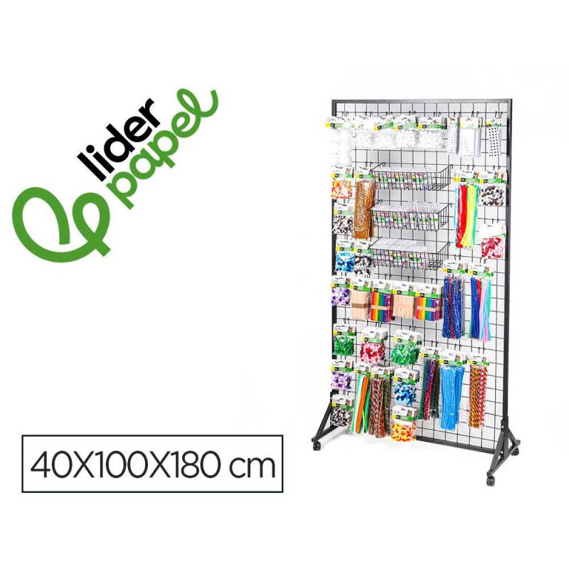 EXPOSITOR LIDERPAPEL METALICO PARA PRODUCTOS DE MANUALIDADES CON 373 UNIDADES SURTIDAS 40 GANCHOS Y 3 BANDEJAS