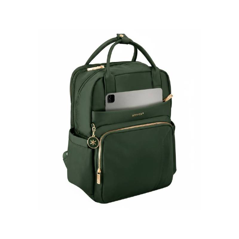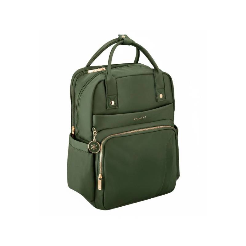 La mochila Antartik Nova en color verde oliva combina funcionalidad y estilo en un diseño compacto y versátil. Con cuatro compartimentos independientes y un bolsillo frontal secreto, facilita la organización eficiente de tus pertenencias, ideal para el uso diario, escolar o actividades al aire libre. Su tamaño equilibrado de 410 x 180 x 320 mm ofrece un buen espacio de almacenamiento sin resultar voluminosa.
