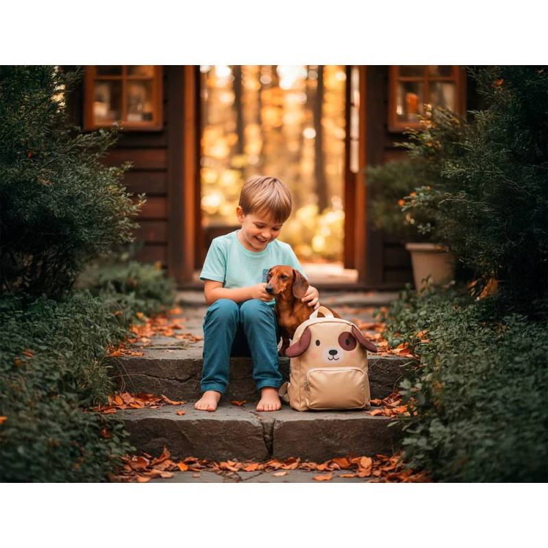 Esta mochila infantil combina funcionalidad y un diseño encantador con la figura de un perro, ideal para los más pequeños. Fabricada en poliéster 190T 100%, un tejido ultraligero y resistente al agua, ofrece un equilibrio perfecto entre durabilidad y facilidad de limpieza. Con un tamaño compacto y dos compartimentos, facilita la organización del material escolar y objetos personales, asegurando comodidad y practicidad para el día a día de los niños.