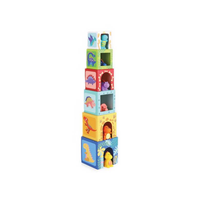 JUEGO INFANTIL IMAGINOVO CUBOS APILABLES NIDOS DINOSAURIOS +12 MESES 12 PIEZAS 13X13X13CM