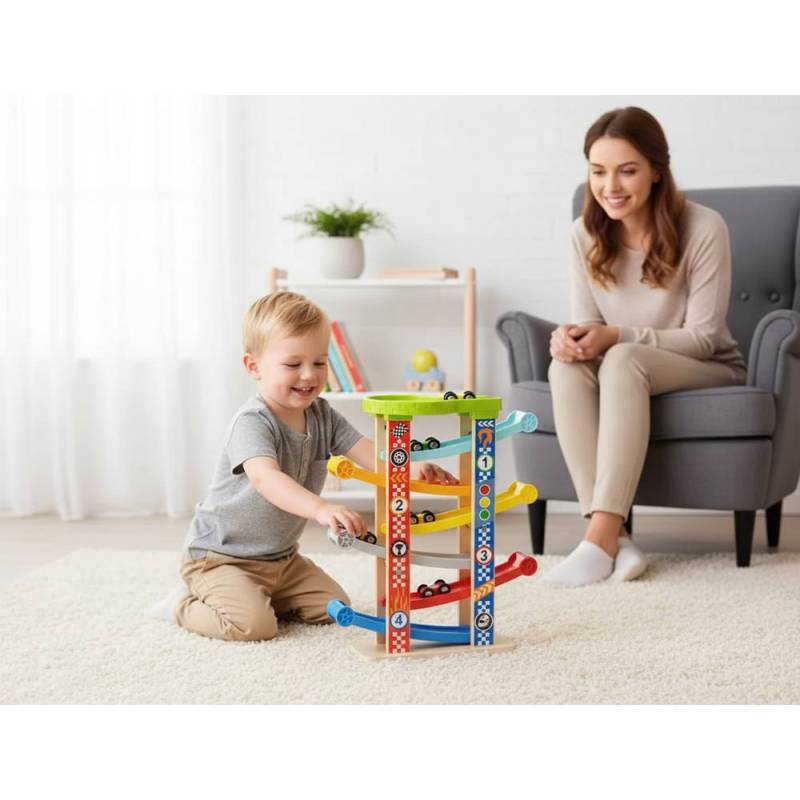 Torre de deslizamiento de madera Imaginovo con 6 coches + 18 meses