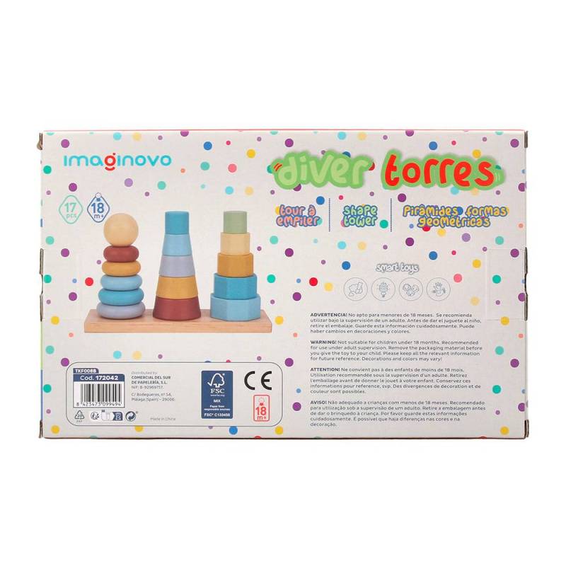 JUEGO INFANTIL IMAGINOVO MADERA TORRE DE FORMAS APILABLES +18 MESES 17 PIEZAS 28X20X9CM