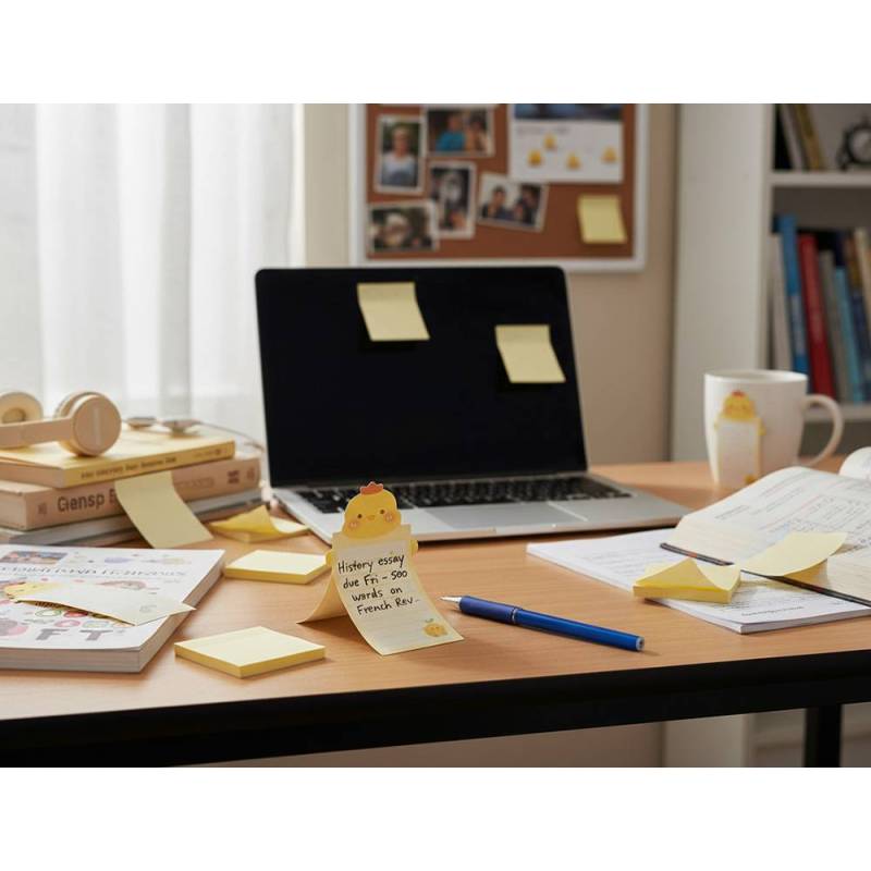 Haz que tus recordatorios y mensajes diarios sean más agradables con estas notas adhesivas de diseño divertido y colorido. Con un tamaño práctico y un diseño con un pollito y mensaje en la parte trasera, son perfectas para añadir un toque creativo en el hogar, la escuela o la oficina.