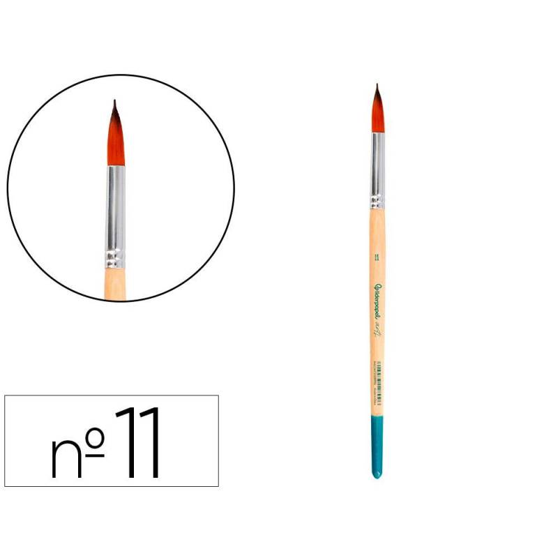 Este pincel para pintura acrílica y acuarela es una herramienta versátil y de alta calidad, diseñada para ofrecer precisión y control en cada trazo. Con su punta redonda n° 11 y pelo sintético certificado FSC, combina resistencia y flexibilidad, permitiendo una aplicación uniforme y detallada tanto en técnicas artísticas como en manualidades.