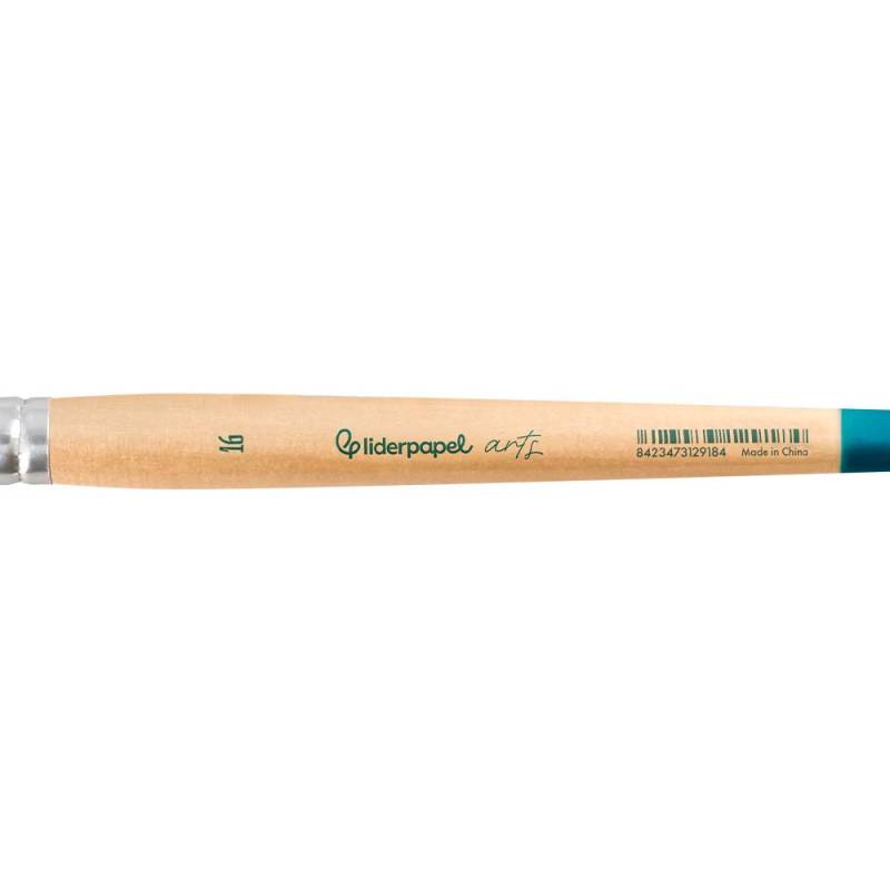 Este pincel para pintura acrílica y acuarela de Liderpapel, con número 16 y punta filbert o lengua de gato, está especialmente diseñado para ofrecer versatilidad y precisión en diversas técnicas artísticas. Su forma ovalada con puntas redondeadas permite realizar tanto trazos amplios como detalles finos, facilitando mezclas y transiciones suaves entre colores. Ideal para artistas que emplean acrílicos, acuarelas y gouache, combina resistencia y flexibilidad gracias a su pelo sintético certificado, que mantiene la forma durante el uso y es fácil de limpiar.