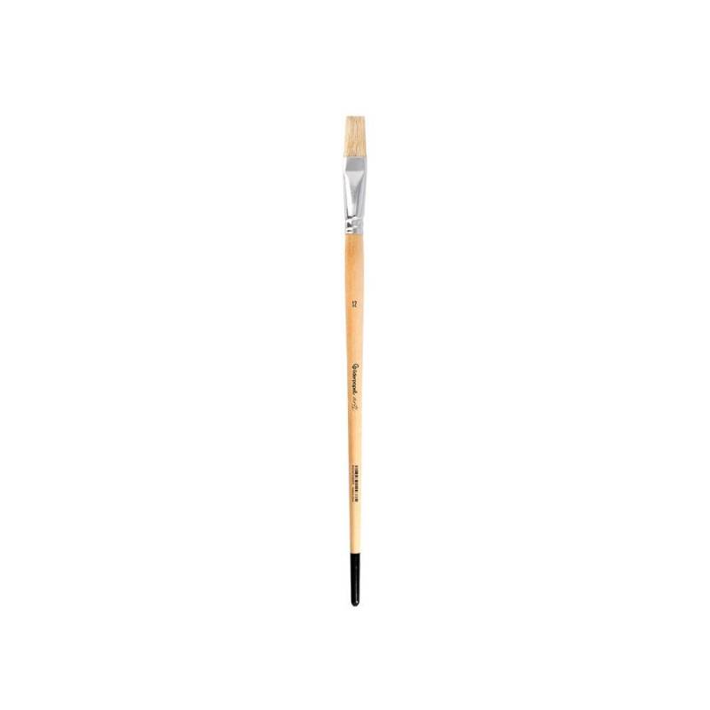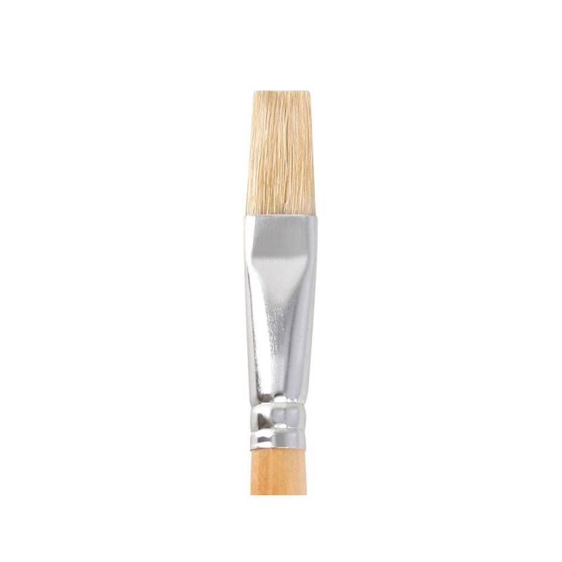 Este pincel número 12 de punta plana está especialmente diseñado para pintura al óleo y acrílica, fabricado con pelo de cerda natural certificado por el FSC, lo que garantiza una materia prima sostenible y de alta calidad. Su estructura robusta y su forma rectangular permiten una aplicación uniforme y precisa, ideal para técnicas que requieren pinceladas visibles y efectos texturizados.