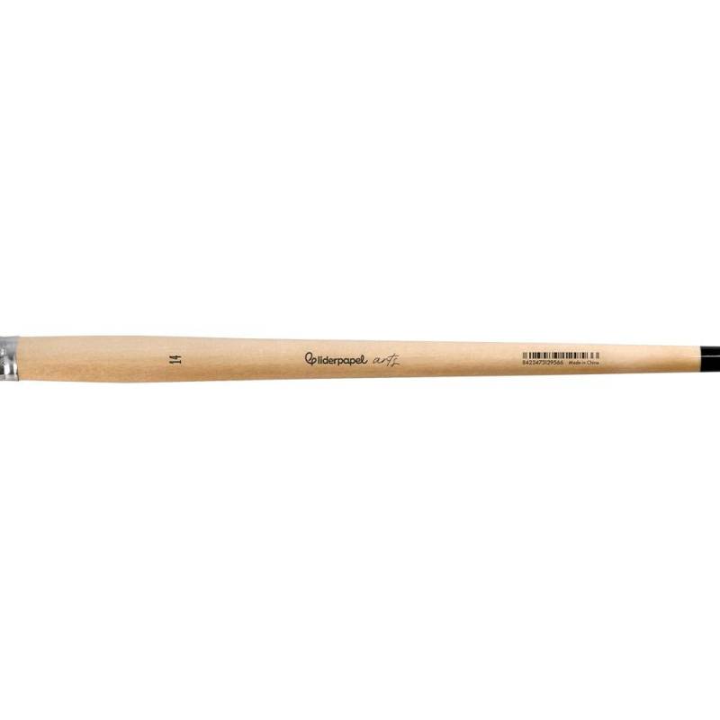Este pincel nº 14 de la marca Liderpapel, con punta redonda y pelo de cerda natural certificado por FSC, está especialmente diseñado para pintura al óleo y acrílica. Su construcción con cerdas rígidas y duraderas permite una aplicación uniforme y eficiente de pinturas espesas, facilitando tanto trazos delicados como técnicas más texturizadas. La combinación de precisión y resistencia lo convierte en una herramienta versátil para artistas que buscan control y calidad en sus trabajos.