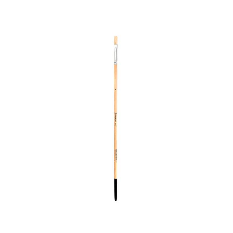 Este pincel número 4 de punta plana está especialmente diseñado para pintura al óleo y acrílica, ofreciendo un rendimiento óptimo gracias a su pelo de cerda natural y un mango fabricado con madera certificada FSC. Su estructura rígida y duradera facilita la aplicación de pinturas densas, permitiendo crear texturas pronunciadas y trazos definidos con gran control y uniformidad.