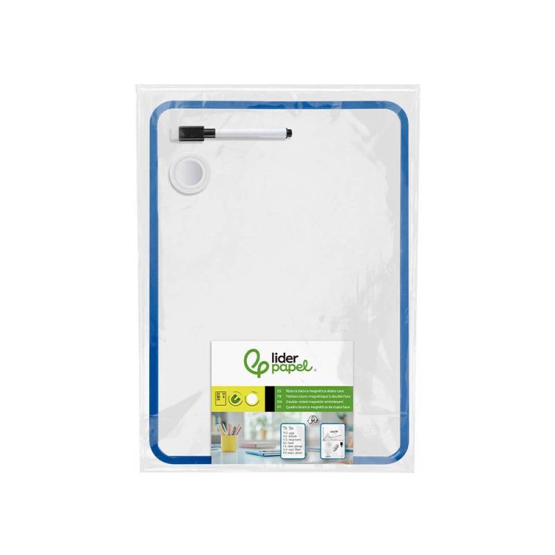 La pizarra blanca magnética de doble cara de Liderpapel, con unas dimensiones compactas de 21 x 30 cm, es una solución práctica y versátil para facilitar la organización y comunicación en distintos entornos como el hogar, la oficina o el aula. Su diseño incluye una superficie lisa y magnética que permite escribir, borrar y adherir objetos metálicos con facilidad, ofreciendo el doble de espacio gracias a sus dos caras utilizables. Además, viene equipada con un rotulador, un borrador y un imán, formando un conjunto completo y funcional listo para usar.