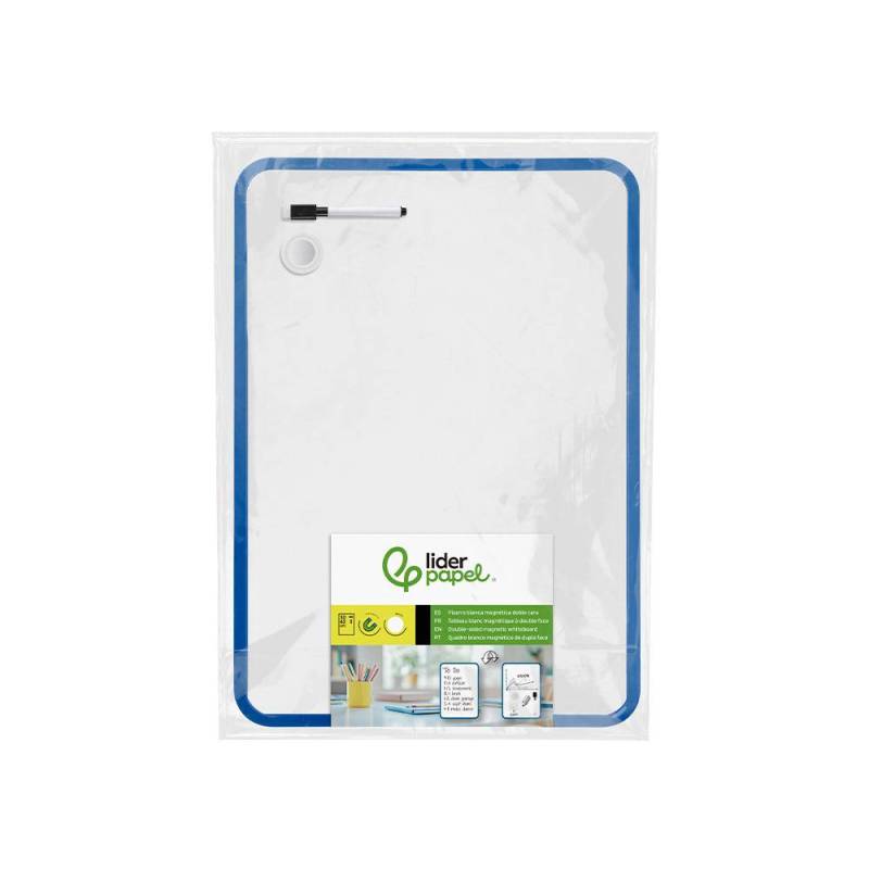La pizarra blanca magnética de doble cara de Liderpapel, con dimensiones de 30 x 42 cm, es un complemento versátil y funcional para cualquier espacio de trabajo, estudio o aula. Su superficie lisa facilita la escritura y el borrado, mientras que su capacidad magnética permite sujetar notas y documentos con imanes. Incluye un rotulador, un imán y un borrador, formando un kit completo para empezar a usarla desde el primer momento. Su diseño compacto y ligero la hace fácil de transportar y almacenar, y la doble cara multiplica el espacio disponible para anotaciones y presentaciones.
