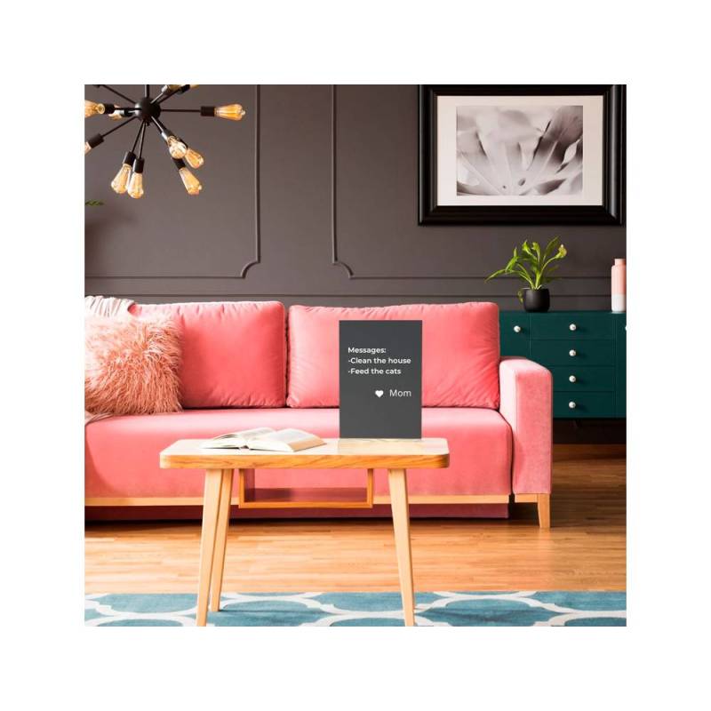 Esta pizarra es una solución práctica y reutilizable para comunicar mensajes, planificar actividades o destacar información relevante en oficinas, comercios, hostelería o centros educativos. Su diseño versátil y ecológico la convierte en un recurso funcional que se adapta a múltiples usos, facilitando la comunicación visual diaria.