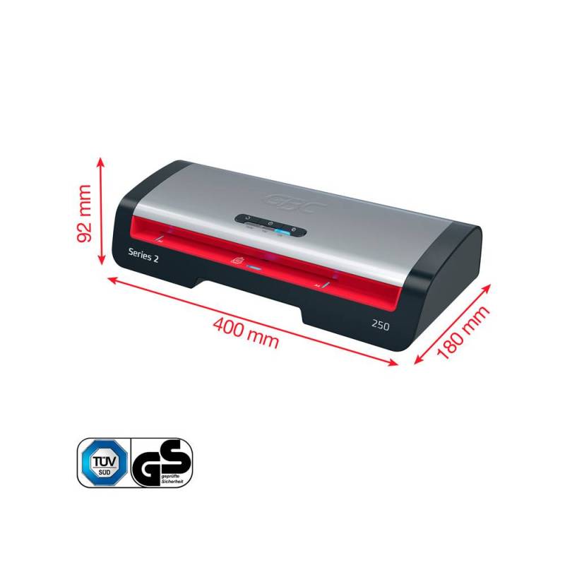 La plastificadora GBC 250 OFFICE DIN A4 es una solución práctica y eficiente para proteger documentos en entornos de oficina. Diseñada para ofrecer un plastificado rápido y uniforme, esta máquina facilita la preservación de documentos hasta tamaño A4 con un acabado profesional, combinando funcionalidad y ahorro energético mediante su apagado automático.