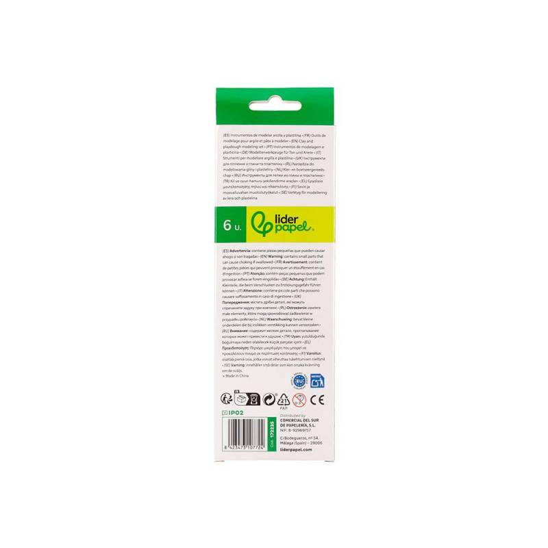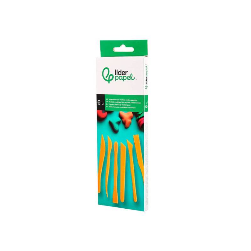 INSTRUMENTOS DE MODELAR LIDERPAPEL PARA ARCILLA Y PLASTILINA CAJA DE 6 PIEZAS