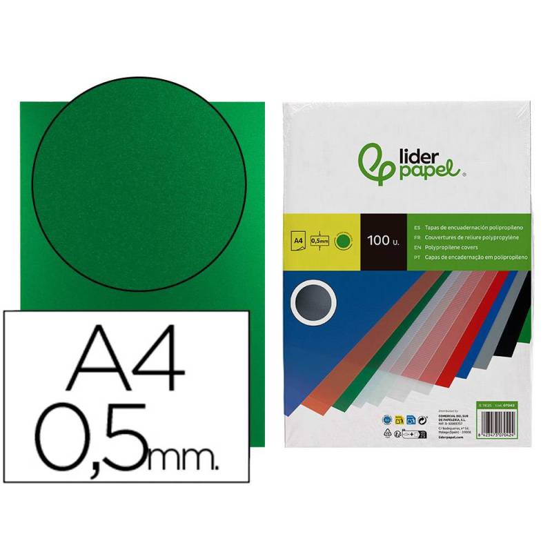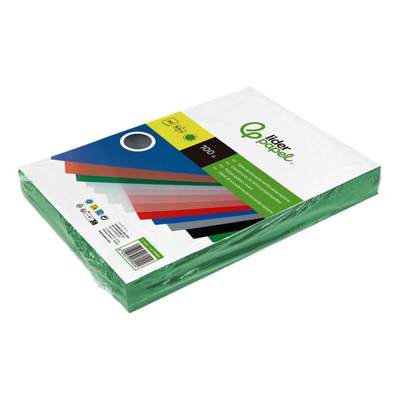 Tapa de Encuadernacion Polipropileno Liderpapel DIN A4 Color Verde 0,5 mm pack 100 uds