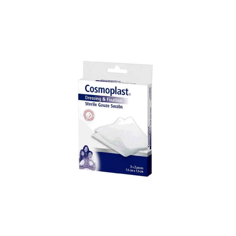 Las gasas esterilizadas Cosmoplast Universal son un recurso esencial en el cuidado de heridas, ideales para situaciones de emergencia como cortes y abrasiones. Fabricadas con 100% algodón, estas gasas de alta calidad proporcionan una excelente absorción y protección. Cada caja contiene seis unidades de 7,5 x 7,5 cm, adecuadas para múltiples aplicaciones médicas y de primeros auxilios.