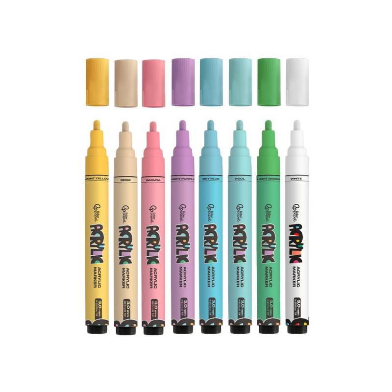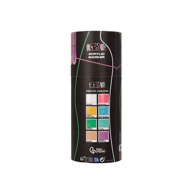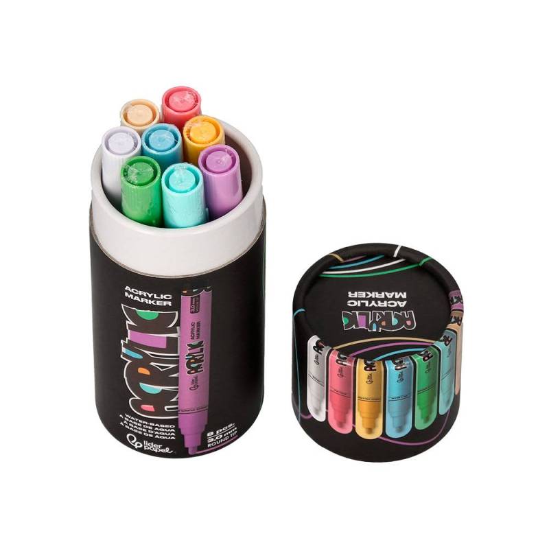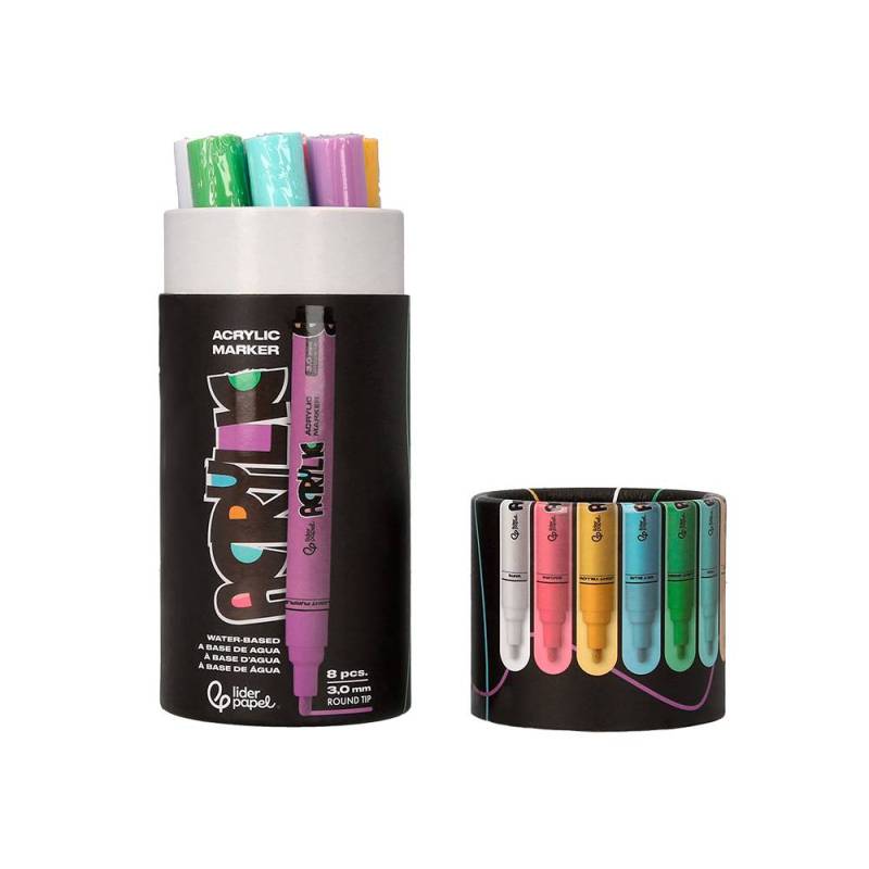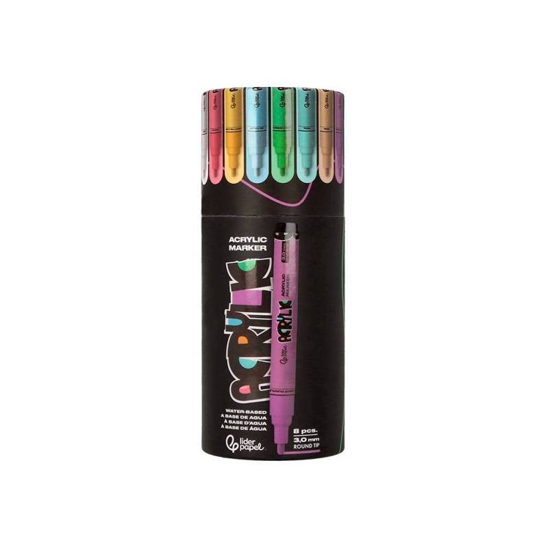 ROTULADOR LIDERPAPEL ACRYLIC BASE AGUA TODO TIPO DE SUPERFICIE PUNTA REDONDA 3 MM CAJA DE 8 UNIDADES COLORES