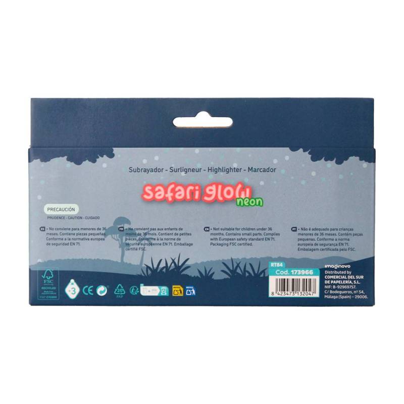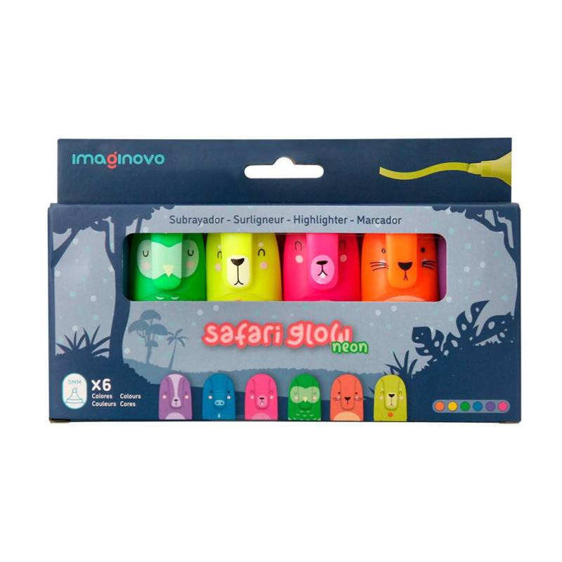 ROTULADOR IMAGINOVO FLUORESCENTE SAFARI GLOW NEON ANIMALES Y CLIP CAJA DE 6 UNIDADES SURTIDAS