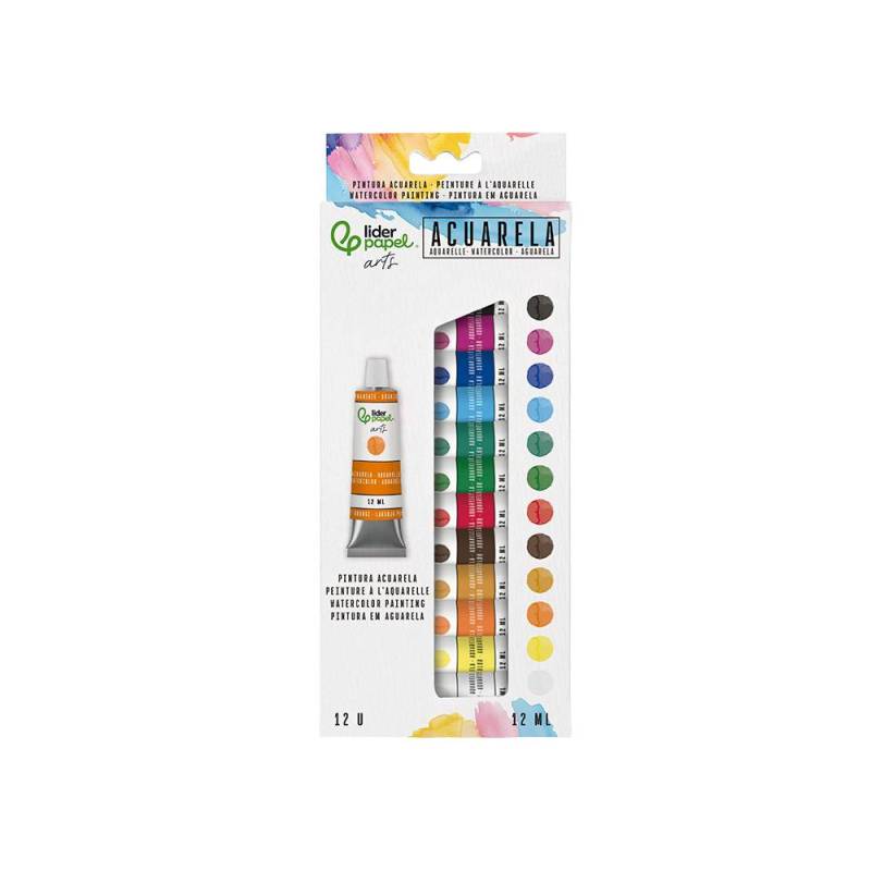 Este set incluye 12 tubos de pintura de acuarela en envases de aluminio de 12 ml cada uno, ofreciendo una selección de colores surtidos que permiten trabajar con una amplia gama de tonalidades mediante mezclas. Su fórmula transparente facilita la creación de efectos luminosos y delicados, ideales para técnicas de acuarela que capturan la esencia de paisajes, retratos y escenas naturales. - Formato: Tubos de aluminio de 12 ml que optimizan la conservación y dosificación precisa del producto.